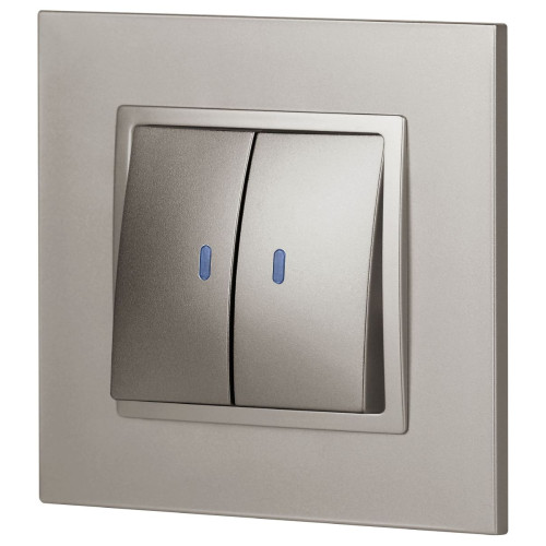 Стильный и функциональный двойной выключатель Эра Elegance титанового цвета со встроенной подсветкой. Прекрасное решение для вашего интерьера, обеспечивающее удобство, стиль, надежность в управлении освещением.